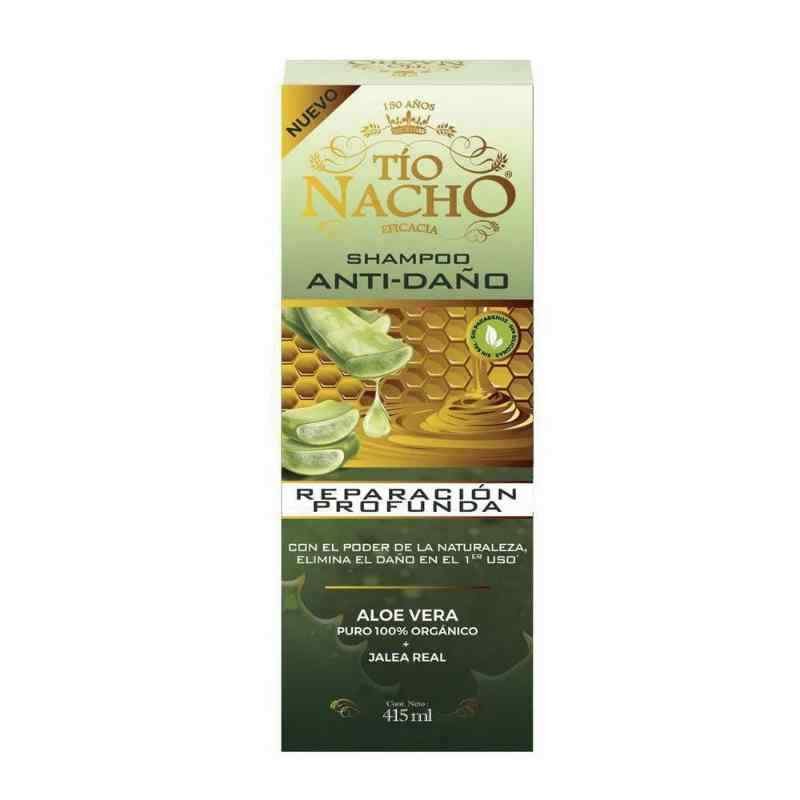 El shampoo Tío Nacho Anti-Daño ofrece un tratamiento de reparación intensa para el cabello dañado. Desarrollado con extractos potentes de la naturaleza *: Aloe Vera 100% Orgánico, conocido por sus propiedades reparadoras e hidratantes,que mejoran notablemente la fibra capilar, y la Jalea Real de Tío Nacho, que proporciona la nutrición que tu pelo necesita. Tío Nacho Anti-Daño repara el cabello hasta las puntas, manteniéndolo hidratado y protegido, dejándolo suave, manejable, con brillo y con aspecto saludable.