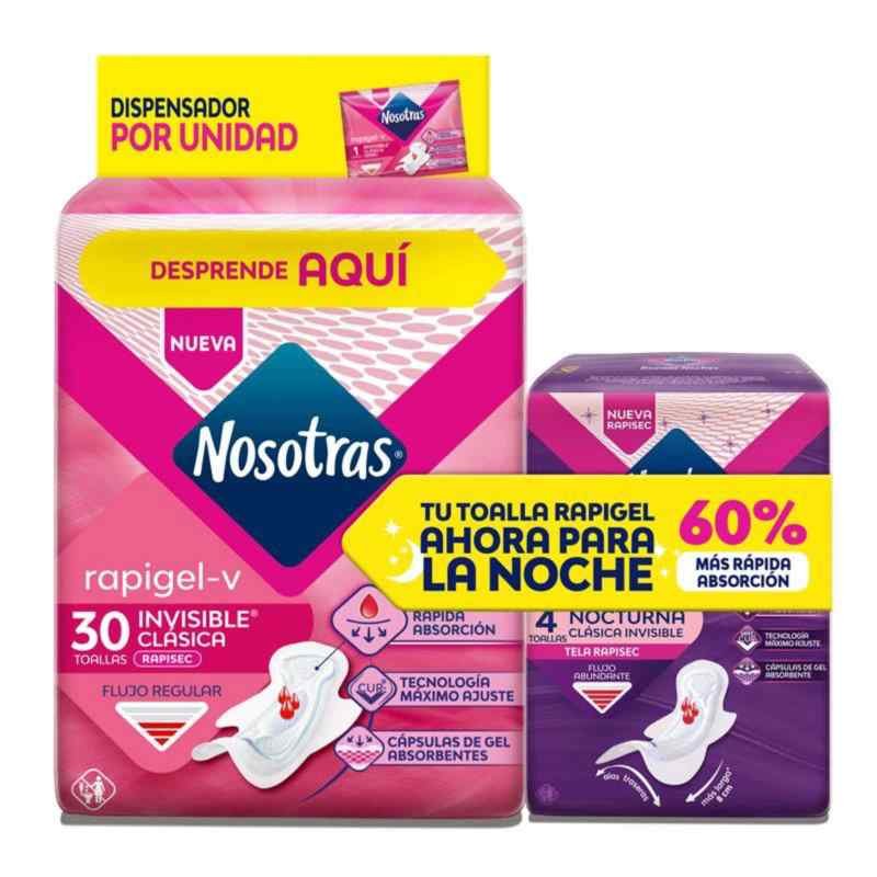 TOALLAS NOSOTRAS INVISIBLE RAPIGEL 30 UNIDADES + 4 BUENAS NOCHES A DOMICILIO