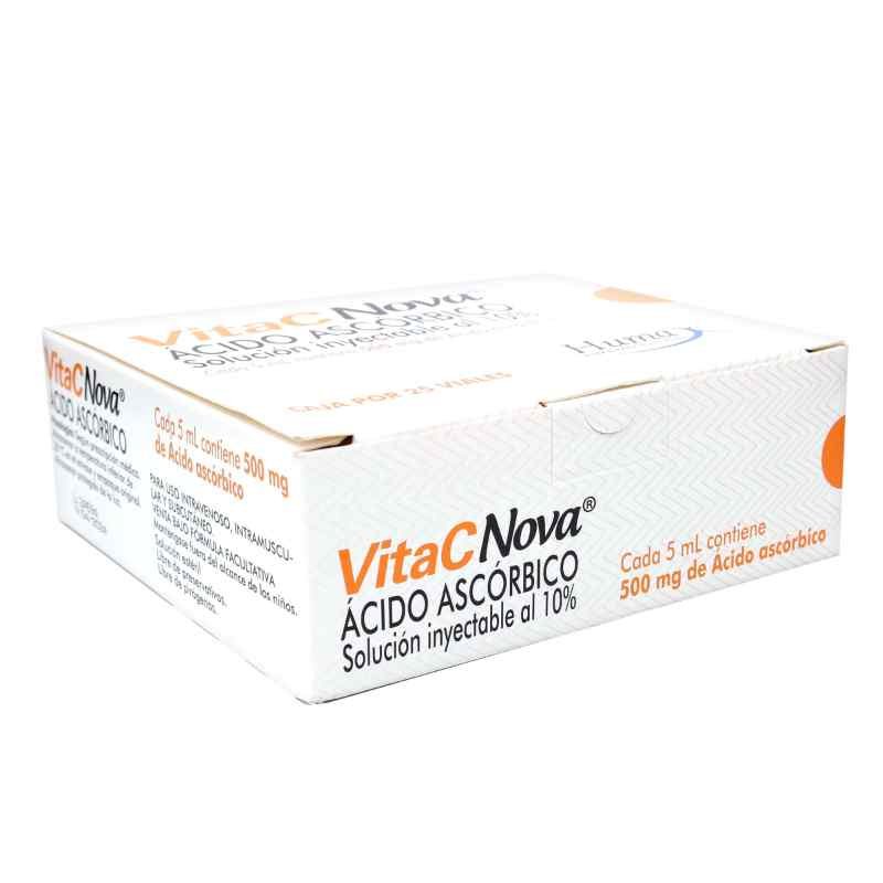 Indicado para uso intravenoso, intramuscular o subcutáneo bajo supervisión médica, VitacNova es ideal para situaciones que requieren una reposición eficiente de vitamina C, ofreciendo un apoyo integral a la salud y el bienestar general.
